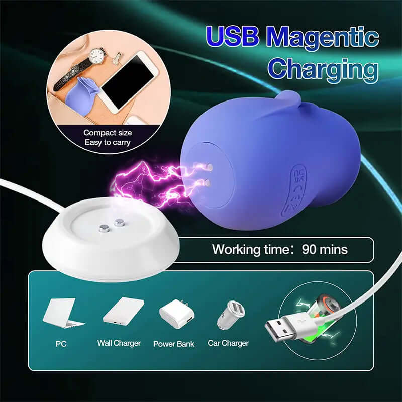 With IPX6 waterproofing, this clit suction toy is easy to clean and can be enjoyed in various settings. It offers up to 1.6 hours of use on a 2.5-hour charge, thanks to its magnetic charging feature.